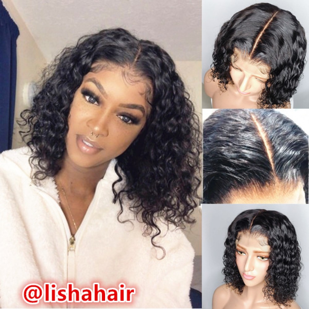 Middle Part Short Water Wave Curly Human Hair Wigs Brazilian Bob